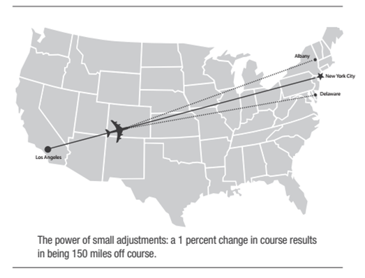 Here’s a great example: A plane is traveling from LA to NYC. What if the plane was off course by only 1%? Doesn’t sound like much, right? Would the plane still reach its destination? If not, how many miles off course would it be?