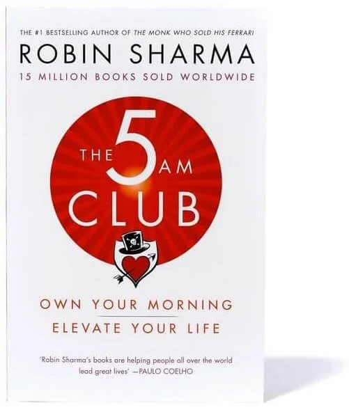 The 5AM Club by Robin Sharma is a book about establishing an early morning routine to boost mental focus and reach peak performance.